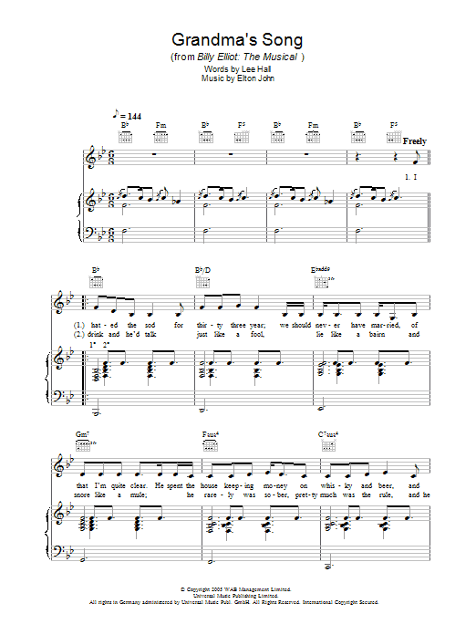 Download or print Elton John Grandma's Song sheet music, chords and digital score arranged for Easy Piano. This Musical/Show score includes 5 page(s).