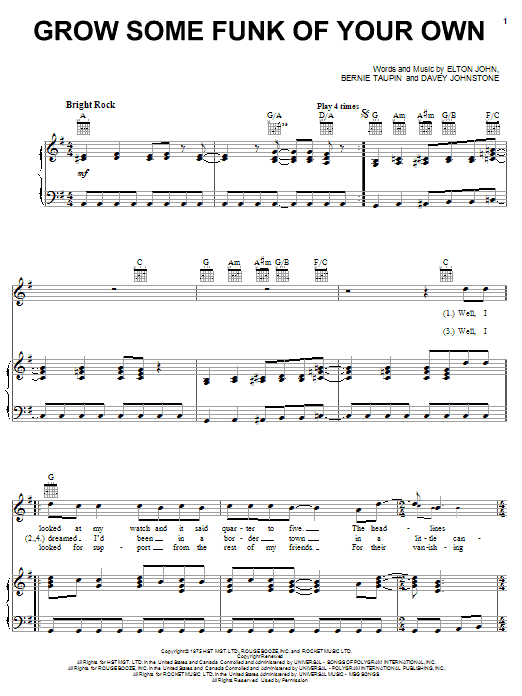 Download or print Elton John Grow Some Funk Of Your Own sheet music, chords and digital score arranged for Guitar Chords/Lyrics. This Pop score includes 3 page(s).