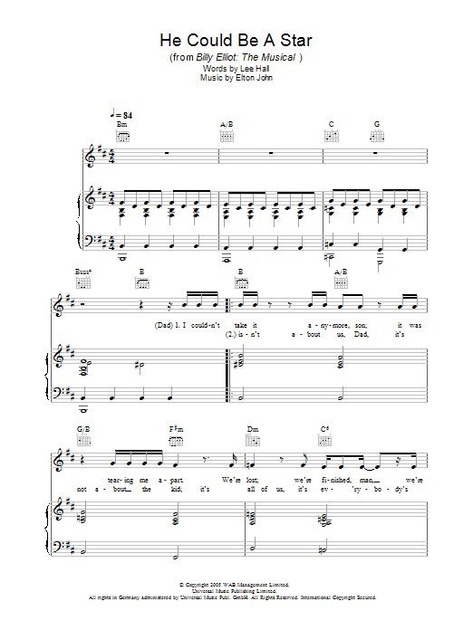Download or print Elton John He Could Be A Star sheet music, chords and digital score arranged for Piano, Vocal & Guitar Chords. This Musical/Show score includes 6 page(s).