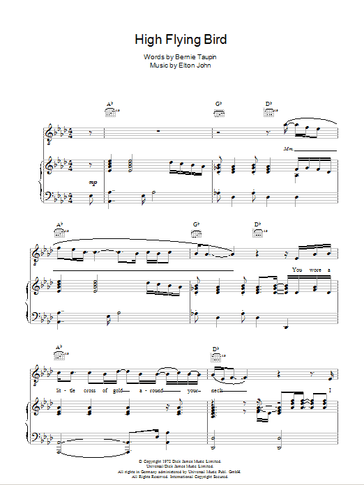 Download or print Elton John High Flying Bird sheet music, chords and digital score arranged for Guitar Chords/Lyrics. This Pop score includes 2 page(s).