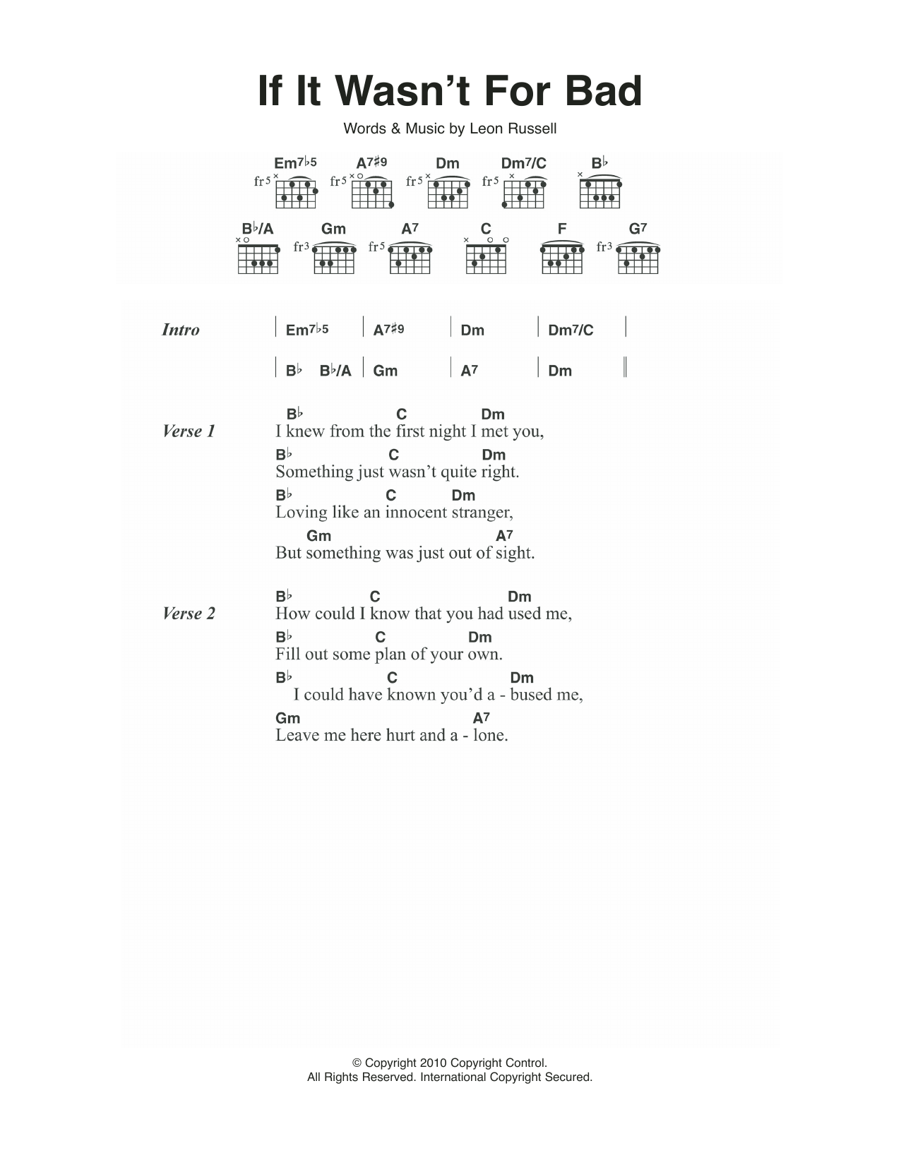 Download or print Elton John If It Wasn't For Bad sheet music, chords and digital score arranged for Guitar Chords/Lyrics. This Pop score includes 3 page(s).