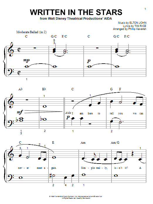Quick facts Written In The Stars (from Aida) (arr. Phillip Keveren) about digital sheet music