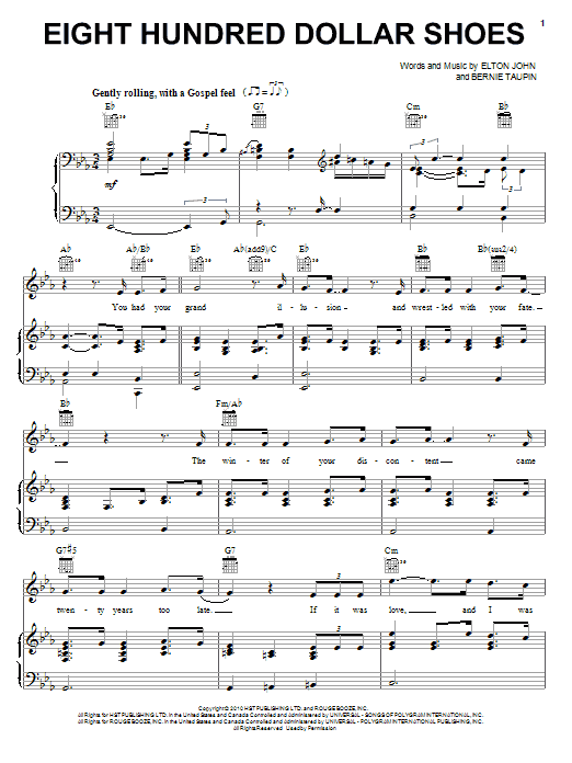 Download or print Elton John & Leon Russell Eight Hundred Dollar Shoes sheet music, chords and digital score arranged for Piano, Vocal & Guitar Chords. This Pop score includes 5 page(s).