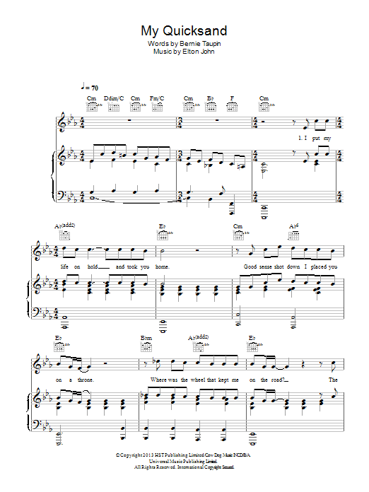 Download or print Elton John My Quicksand sheet music, chords and digital score arranged for Piano, Vocal & Guitar Chords. This Pop score includes 7 page(s).