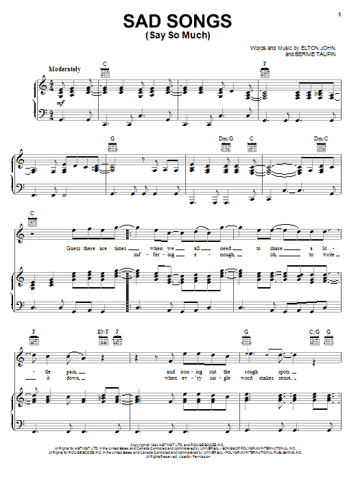 Download or print Elton John Sad Songs (Say So Much) sheet music, chords and digital score arranged for Really Easy Piano. This Pop score includes 3 page(s).