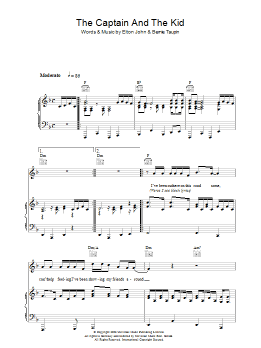 Download or print Elton John The Captain And The Kid sheet music, chords and digital score arranged for Guitar Chords/Lyrics. This Pop score includes 3 page(s).