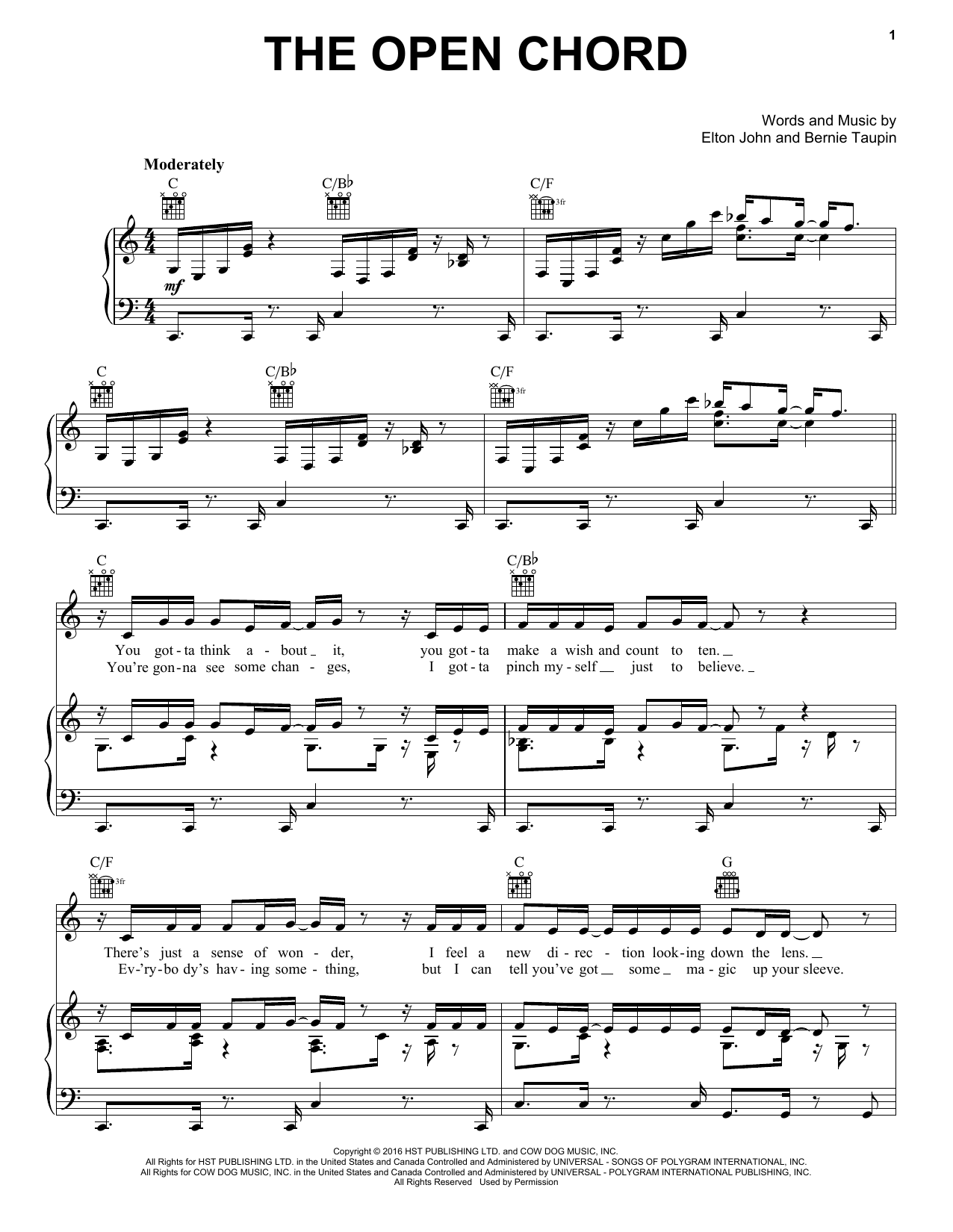 Download or print Elton John The Open Chord sheet music, chords and digital score arranged for Piano, Vocal & Guitar Chords (Right-Hand Melody). This Pop score includes 7 page(s).