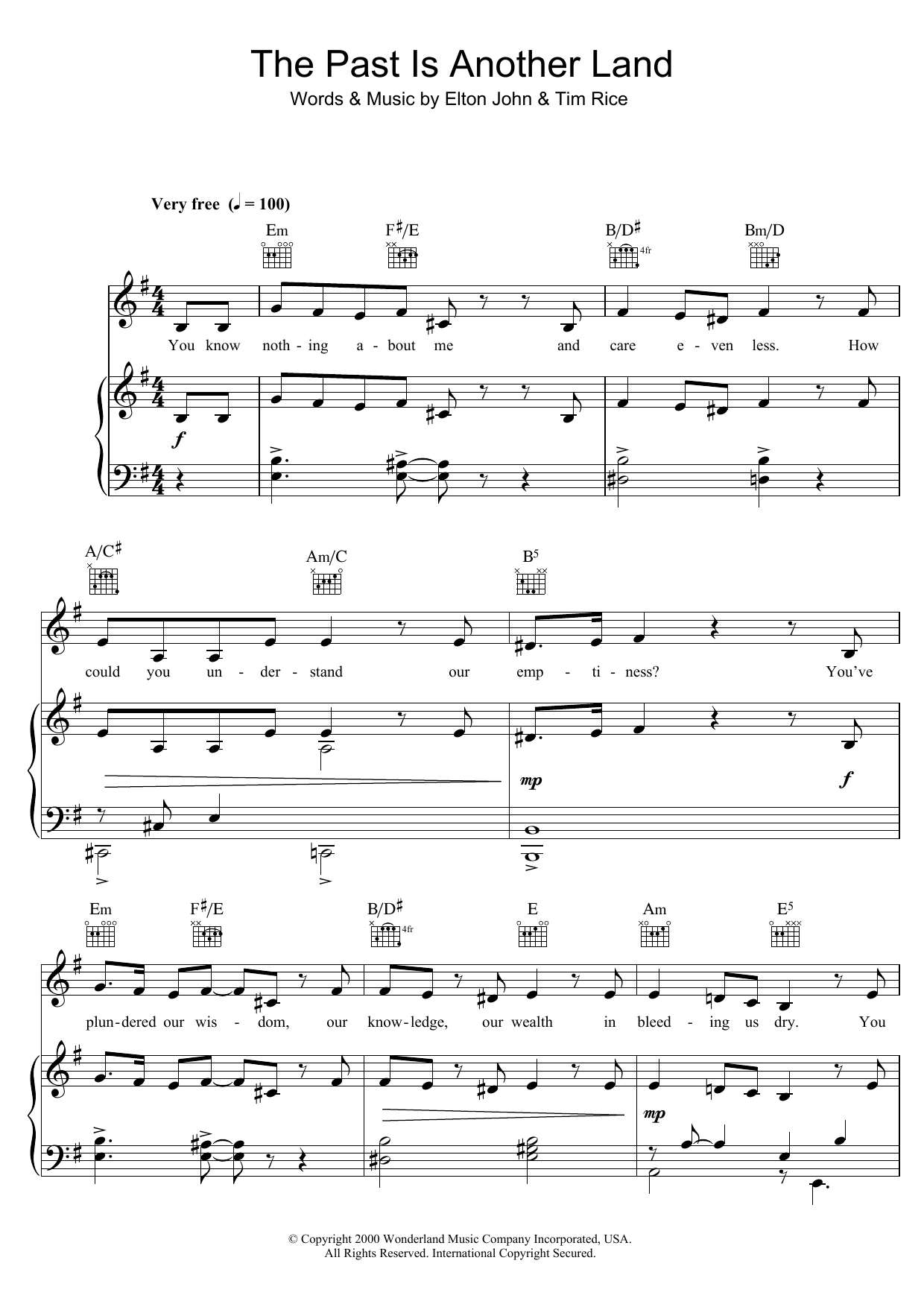Download or print Elton John The Past Is Another Land (from Aida) sheet music, chords and digital score arranged for Piano & Vocal. This Disney score includes 4 page(s).