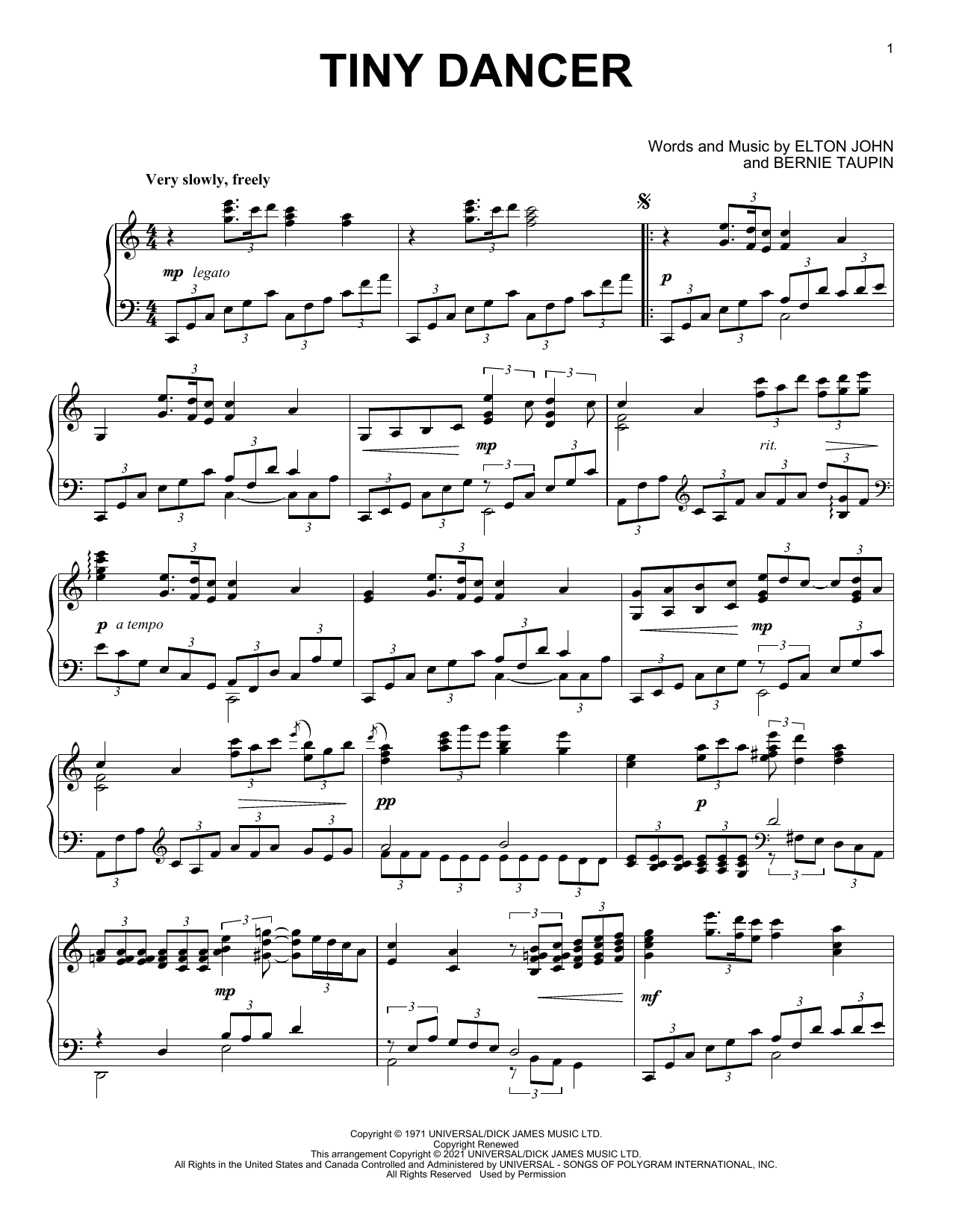 Download or print Elton John Tiny Dancer [Classical version] (arr. David Pearl) sheet music, chords and digital score arranged for Piano Solo. This Pop score includes 3 page(s).