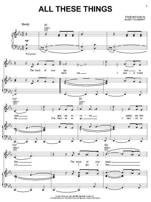 Download or print Elvis Costello & Allen Toussaint All These Things sheet music, chords and digital score arranged for Piano, Vocal & Guitar Chords (Right-Hand Melody). This Pop score includes 5 page(s).