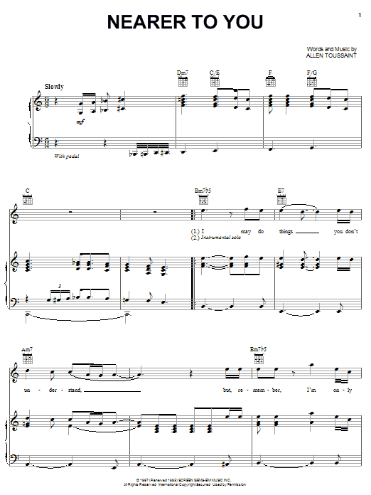 Download or print Elvis Costello & Allen Toussaint Nearer To You sheet music, chords and digital score arranged for Piano, Vocal & Guitar Chords (Right-Hand Melody). This Pop score includes 5 page(s).
