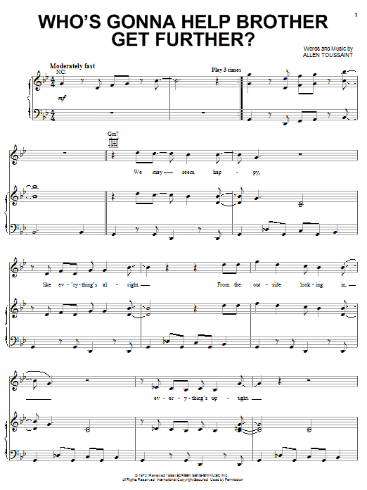 Download or print Elvis Costello & Allen Toussaint Who's Gonna Help Brother Get Further? sheet music, chords and digital score arranged for Piano, Vocal & Guitar Chords (Right-Hand Melody). This Pop score includes 10 page(s).