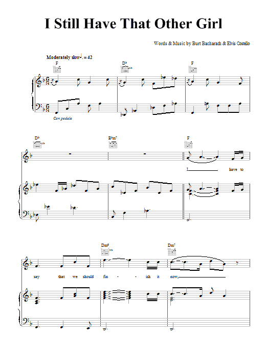 Download or print Elvis Costello & Burt Bacharach I Still Have That Other Girl sheet music, chords and digital score arranged for Piano, Vocal & Guitar Chords. This Pop score includes 7 page(s).