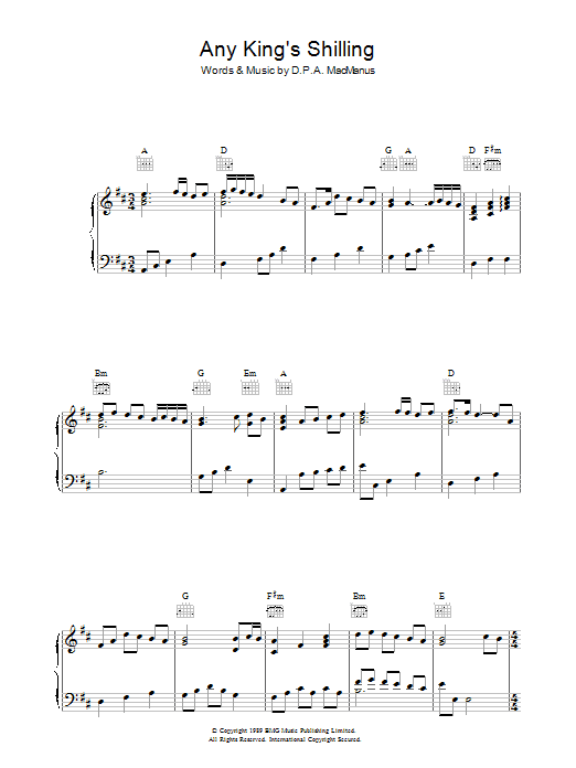 Download or print Elvis Costello Any King's Shilling sheet music, chords and digital score arranged for Piano, Vocal & Guitar Chords. This Pop score includes 4 page(s).
