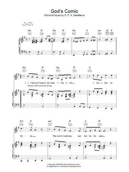 Download or print Elvis Costello God's Comic sheet music, chords and digital score arranged for Piano, Vocal & Guitar Chords. This Pop score includes 6 page(s).