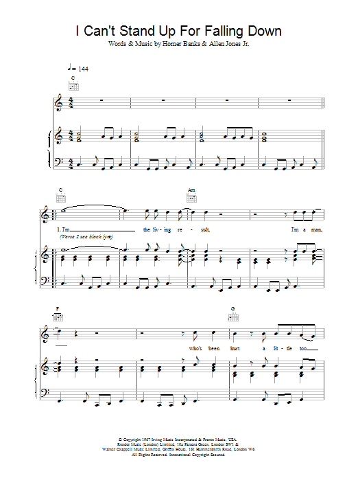 Download or print Elvis Costello I Can't Stand Up For Falling sheet music, chords and digital score arranged for Piano, Vocal & Guitar Chords. This Pop score includes 4 page(s).