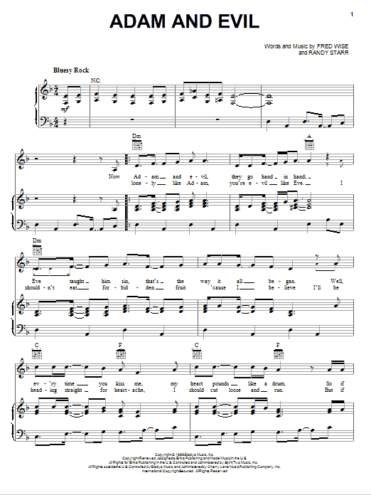 Download or print Elvis Presley Adam And Evil sheet music, chords and digital score arranged for Piano, Vocal & Guitar Chords (Right-Hand Melody). This Pop score includes 3 page(s).