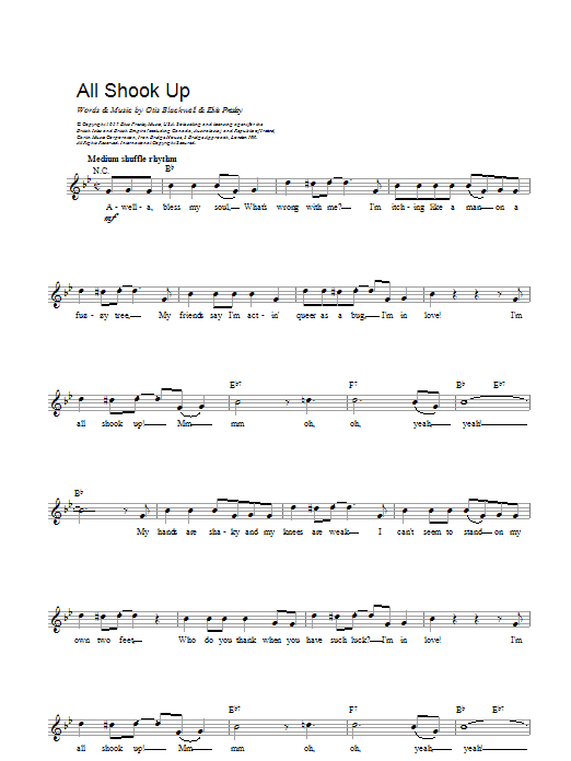 Download or print Elvis Presley All Shook Up sheet music, chords and digital score arranged for Guitar Tab (Single Guitar). This Pop score includes 3 page(s).