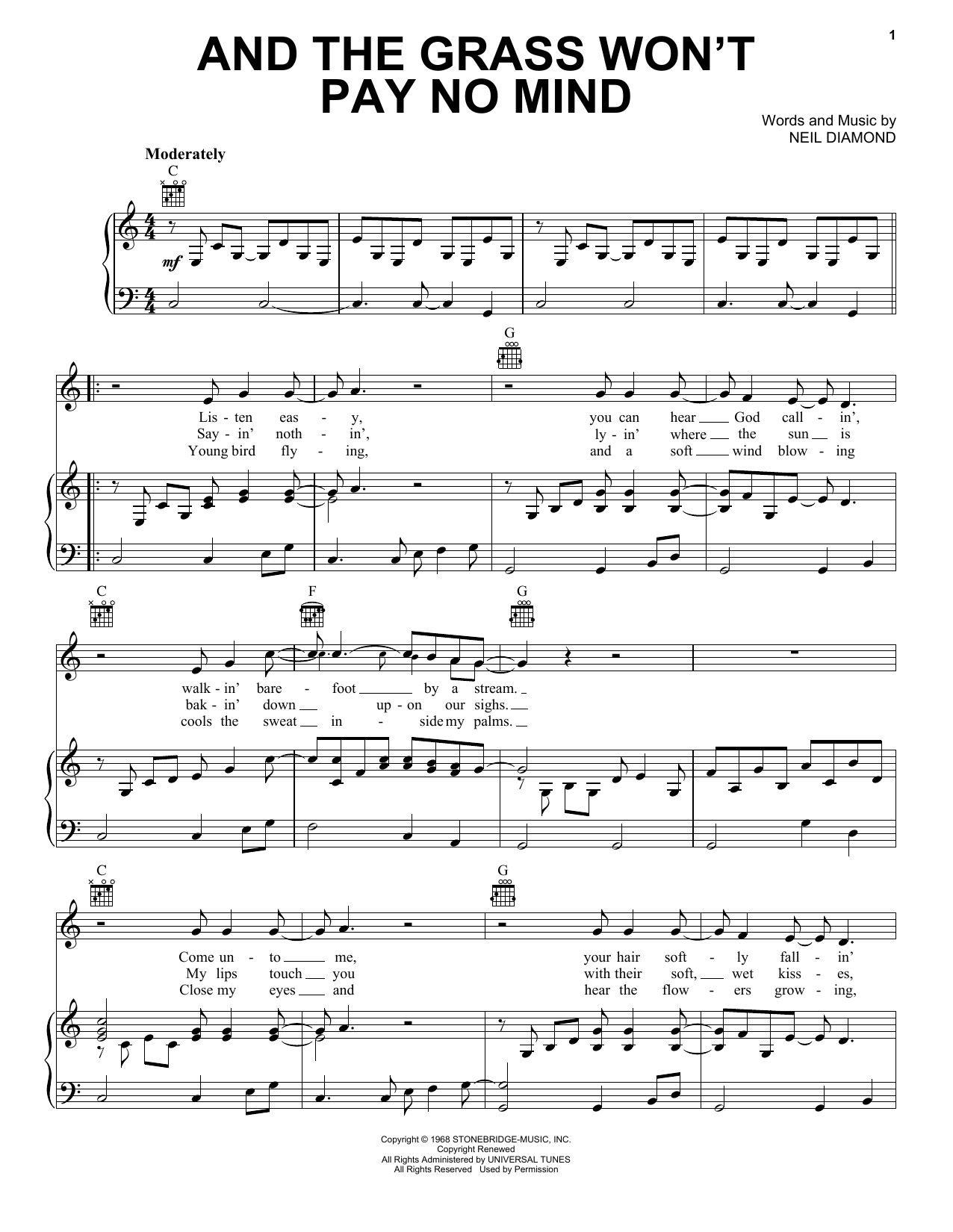 Download or print Elvis Presley And The Grass Won't Pay No Mind sheet music, chords and digital score arranged for Piano, Vocal & Guitar Chords (Right-Hand Melody). This Pop score includes 3 page(s).