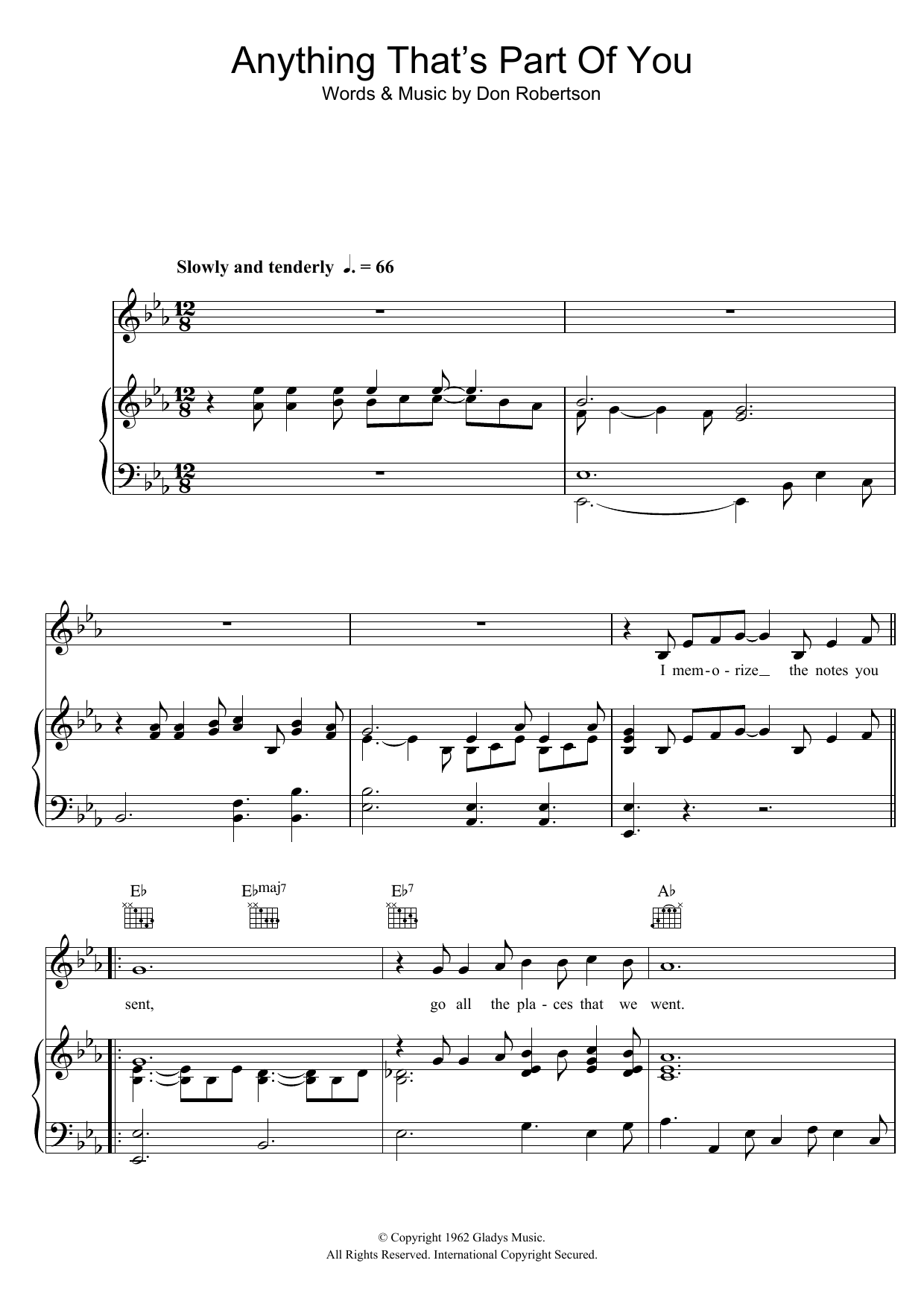 Download or print Elvis Presley Anything That's Part Of You sheet music, chords and digital score arranged for Piano, Vocal & Guitar Chords. This Standards score includes 4 page(s).