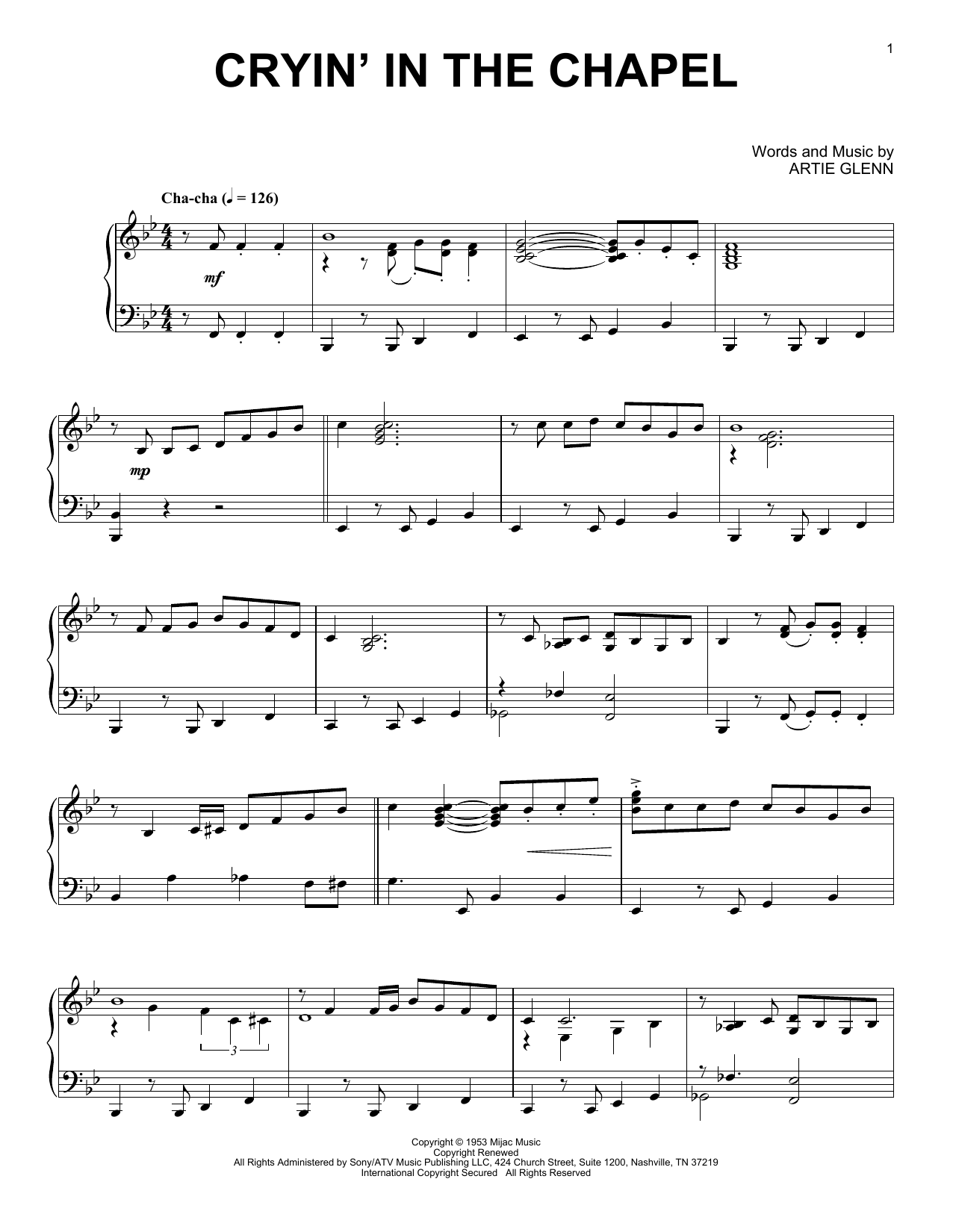Download or print Elvis Presley Cryin' In The Chapel [Jazz version] sheet music, chords and digital score arranged for Piano Solo. This Pop score includes 4 page(s).