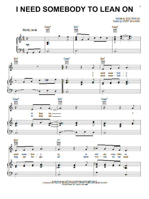 Quick facts I Need Somebody To Lean On about digital sheet music
