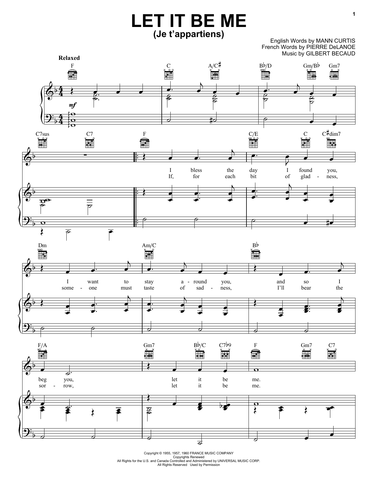 Quick facts Let It Be Me (Je T'appartiens) about digital sheet music