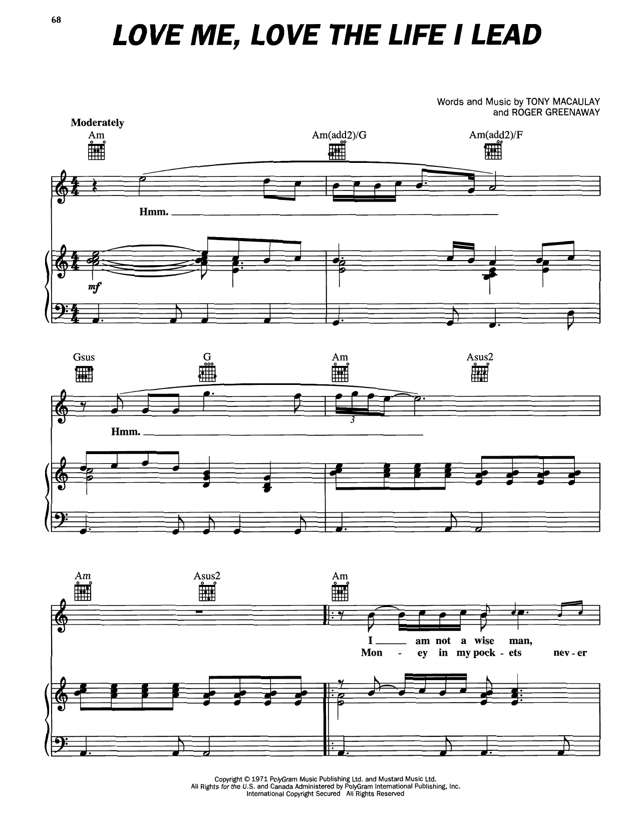 Quick facts Love Me, Love The Life I Lead about digital sheet music