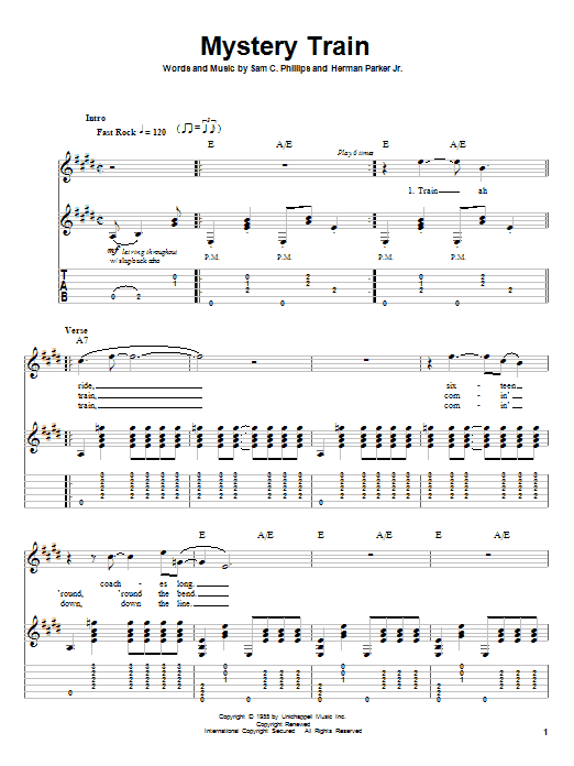 Download or print Elvis Presley Mystery Train sheet music, chords and digital score arranged for Guitar Tab (Single Guitar). This Pop score includes 5 page(s).