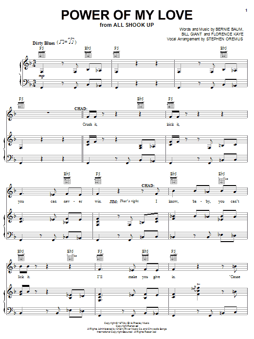 Download or print Elvis Presley Power Of My Love sheet music, chords and digital score arranged for Piano, Vocal & Guitar Chords (Right-Hand Melody). This Love score includes 7 page(s).