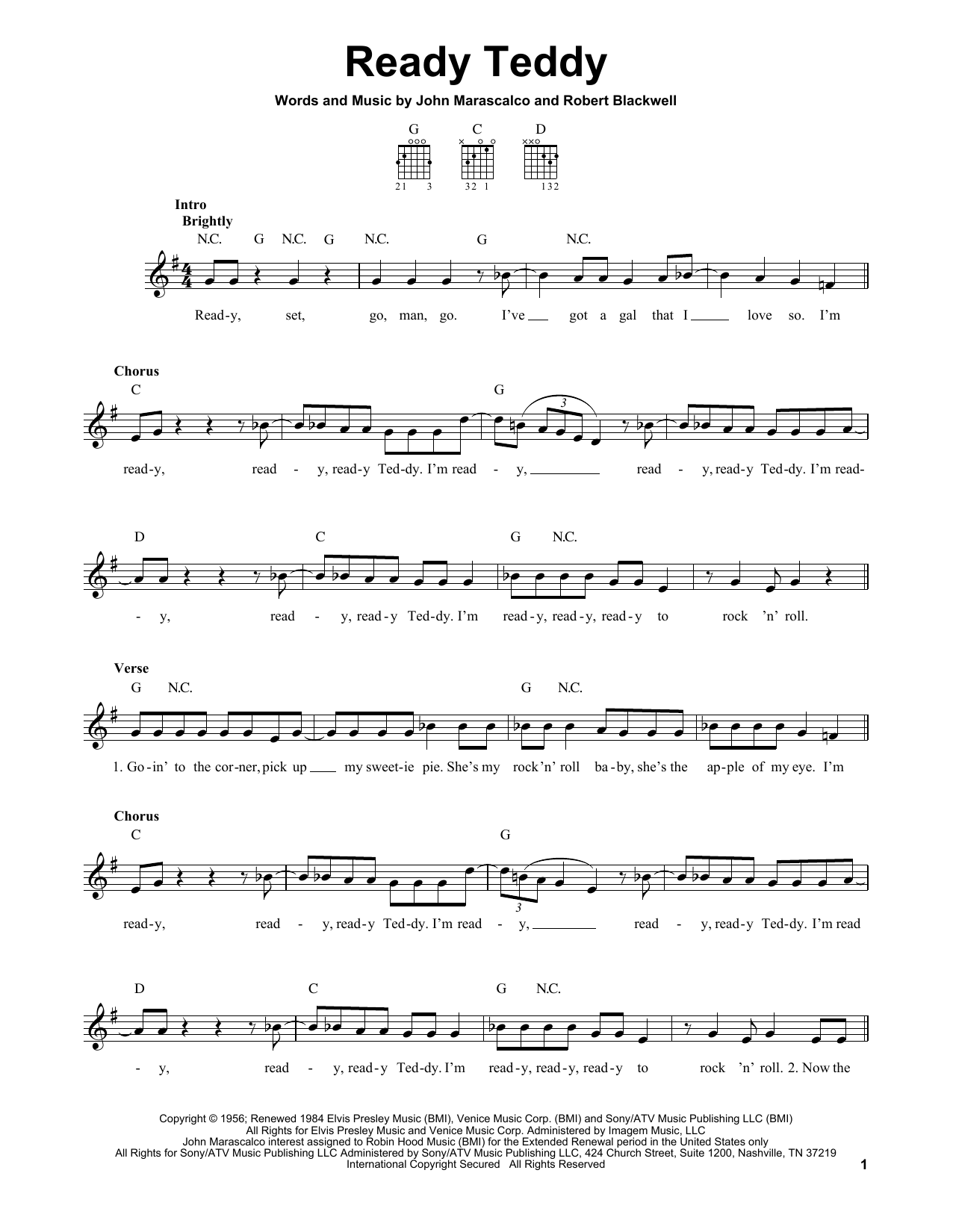 Download or print Little Richard Ready Teddy sheet music, chords and digital score arranged for Piano, Vocal & Guitar Chords (Right-Hand Melody). This Pop score includes 5 page(s).
