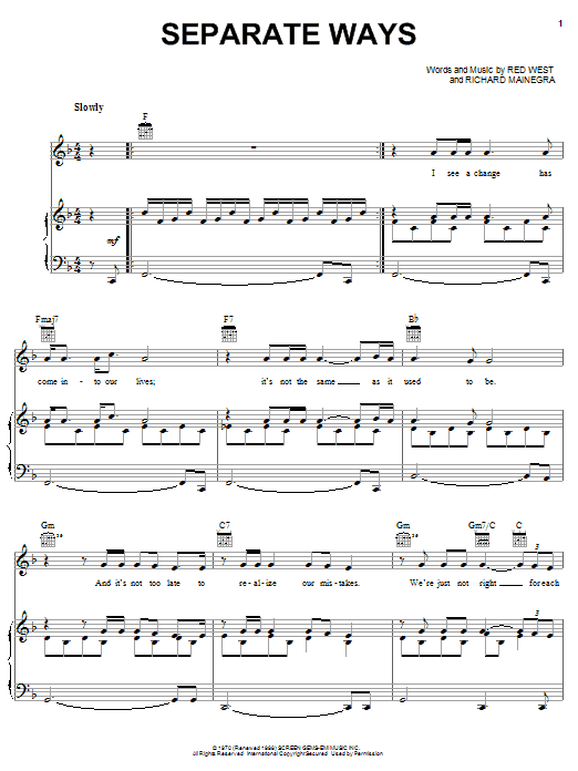 Download or print Elvis Presley Separate Ways sheet music, chords and digital score arranged for Piano, Vocal & Guitar Chords (Right-Hand Melody). This Film/TV score includes 4 page(s).