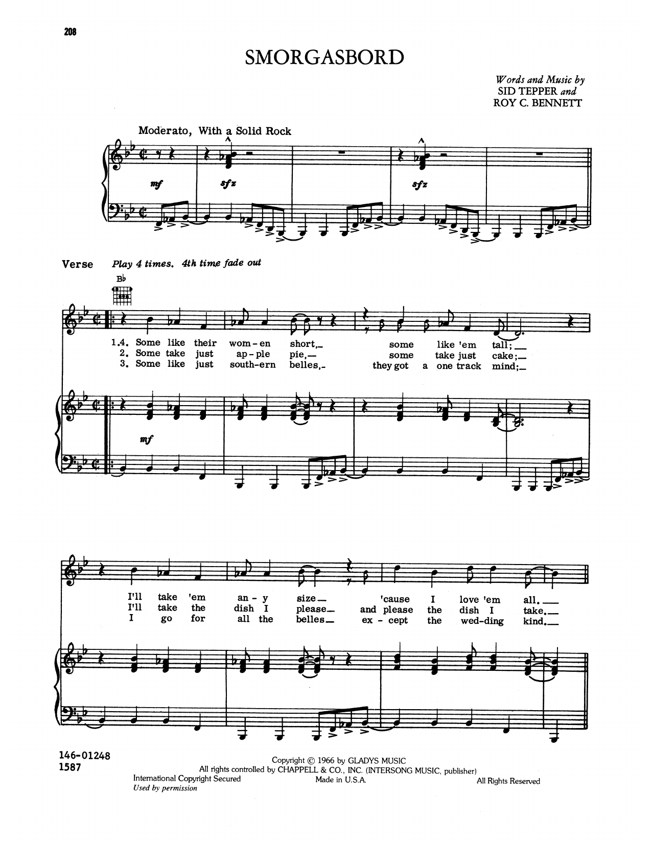 Download or print Elvis Presley Smorgasbord sheet music, chords and digital score arranged for Piano, Vocal & Guitar Chords (Right-Hand Melody). This Pop score includes 2 page(s).