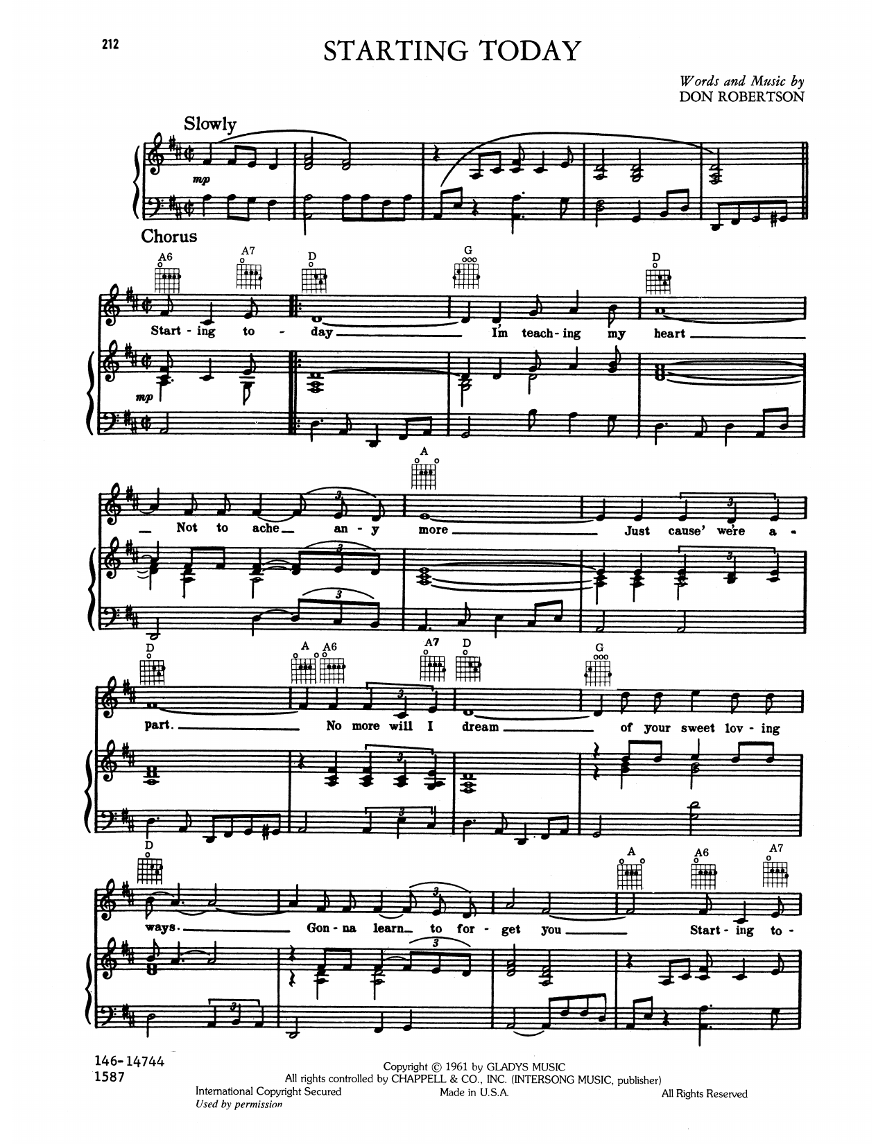 Download or print Elvis Presley Starting Today sheet music, chords and digital score arranged for Piano, Vocal & Guitar Chords (Right-Hand Melody). This Pop score includes 2 page(s).