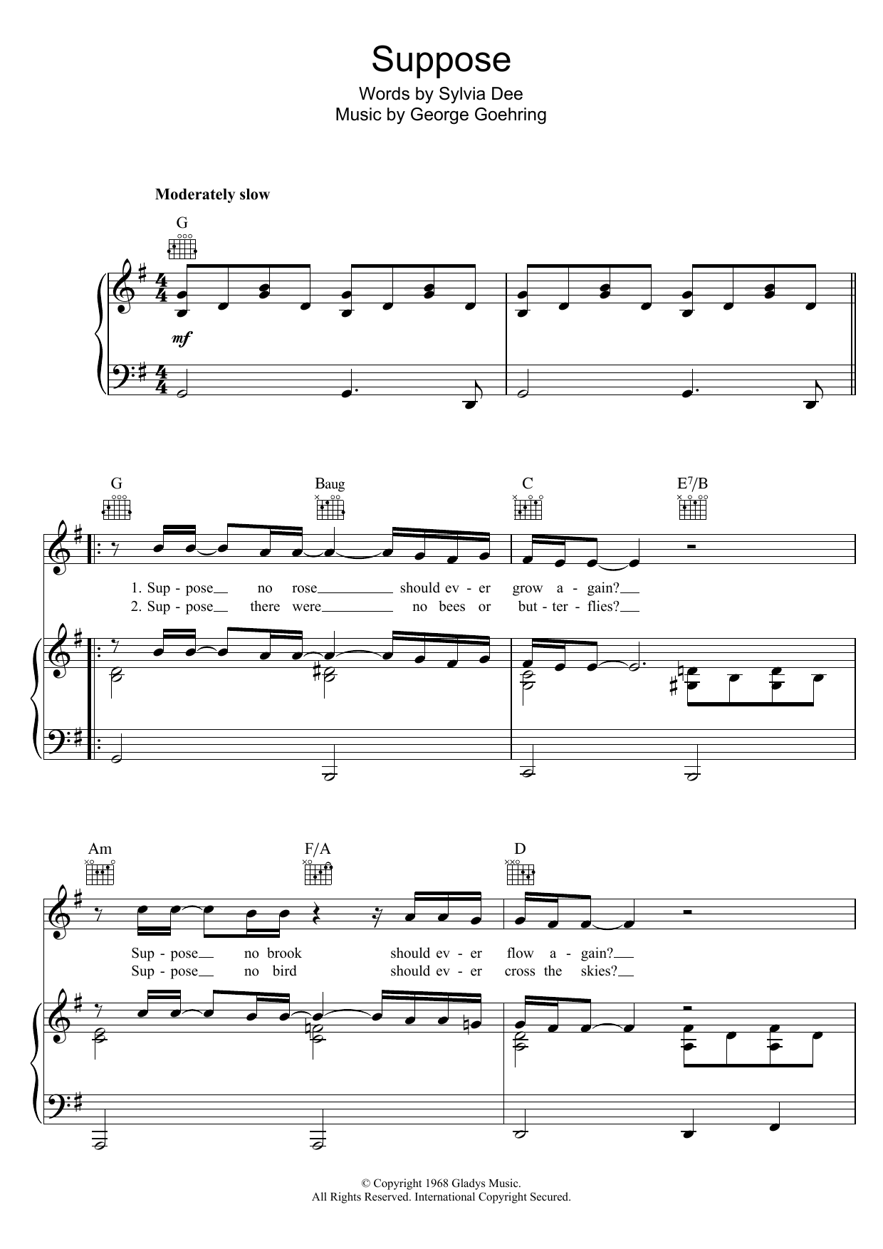 Download or print Elvis Presley Suppose sheet music, chords and digital score arranged for Piano, Vocal & Guitar Chords (Right-Hand Melody). This Pop score includes 4 page(s).
