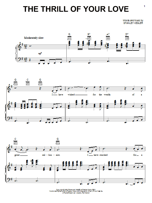 Download or print Elvis Presley The Thrill Of Your Love sheet music, chords and digital score arranged for Piano, Vocal & Guitar Chords (Right-Hand Melody). This Pop score includes 4 page(s).