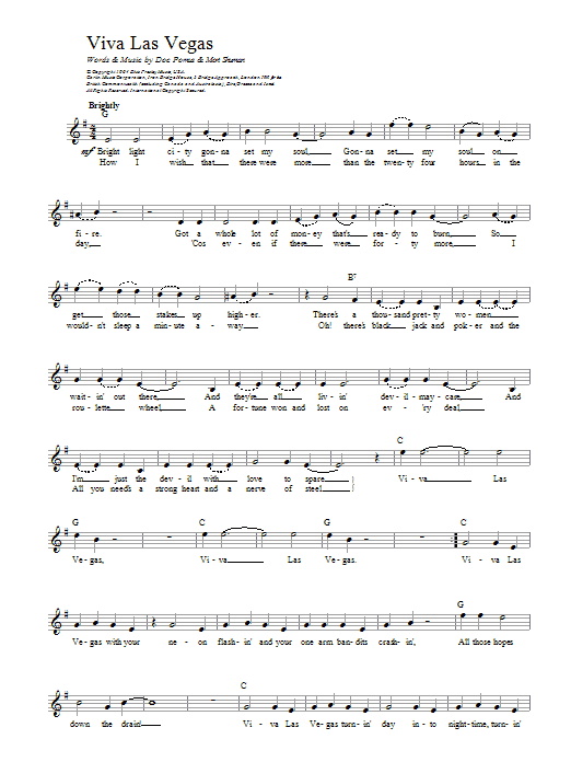 Download or print Elvis Presley Viva Las Vegas sheet music, chords and digital score arranged for Guitar Chords/Lyrics. This Pop score includes 3 page(s).