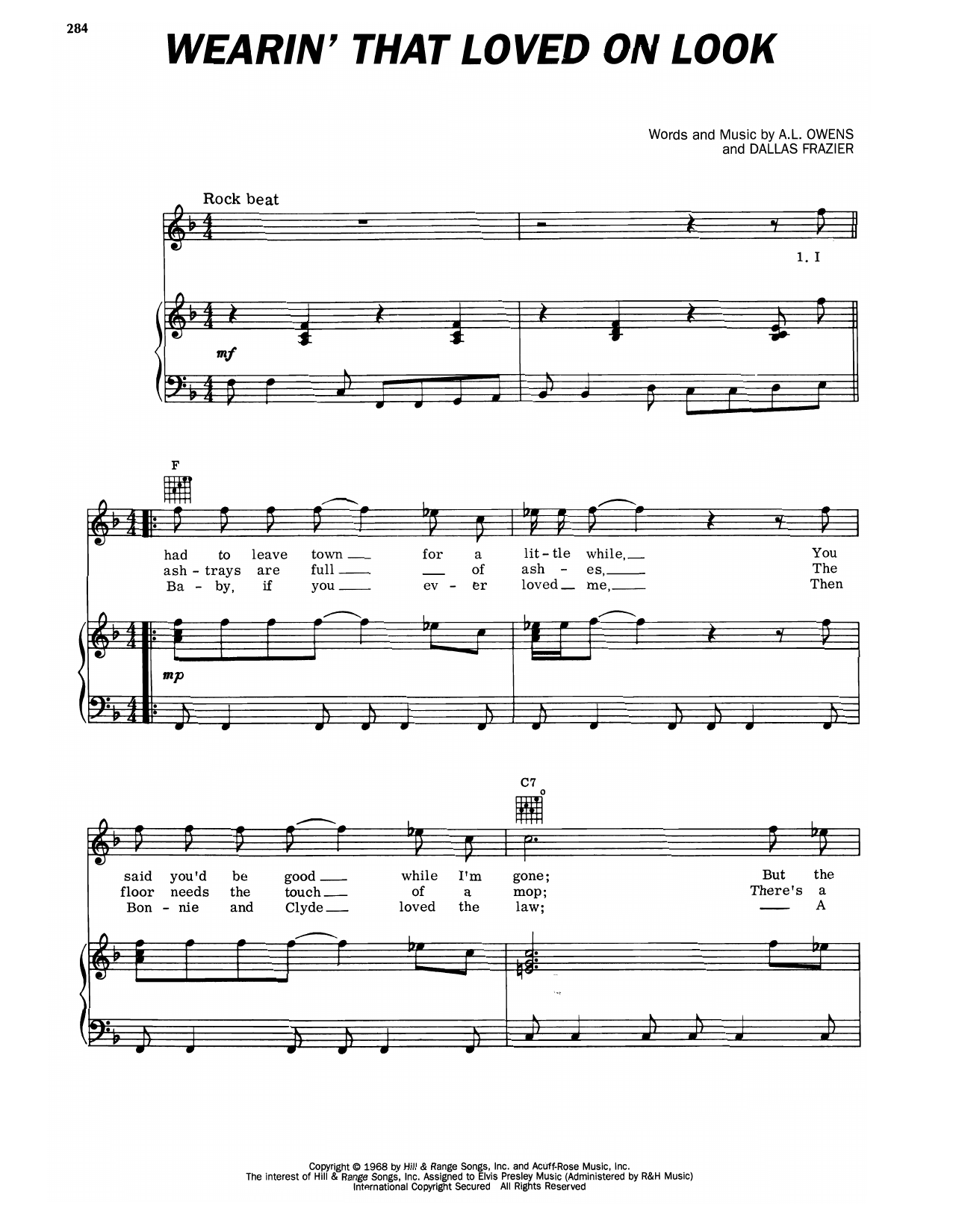 Download or print Elvis Presley Wearin' That Loved On Look sheet music, chords and digital score arranged for Piano, Vocal & Guitar Chords (Right-Hand Melody). This Rock score includes 2 page(s).