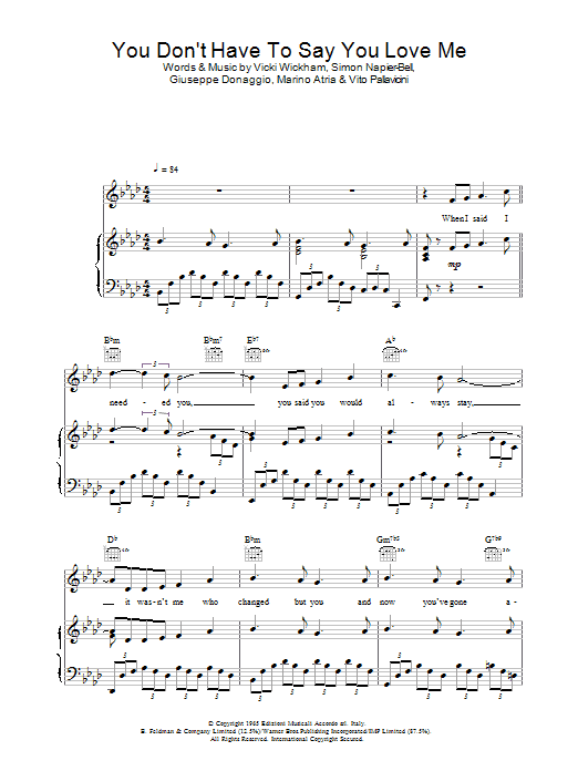 Quick facts You Don't Have To Say You Love Me about digital sheet music