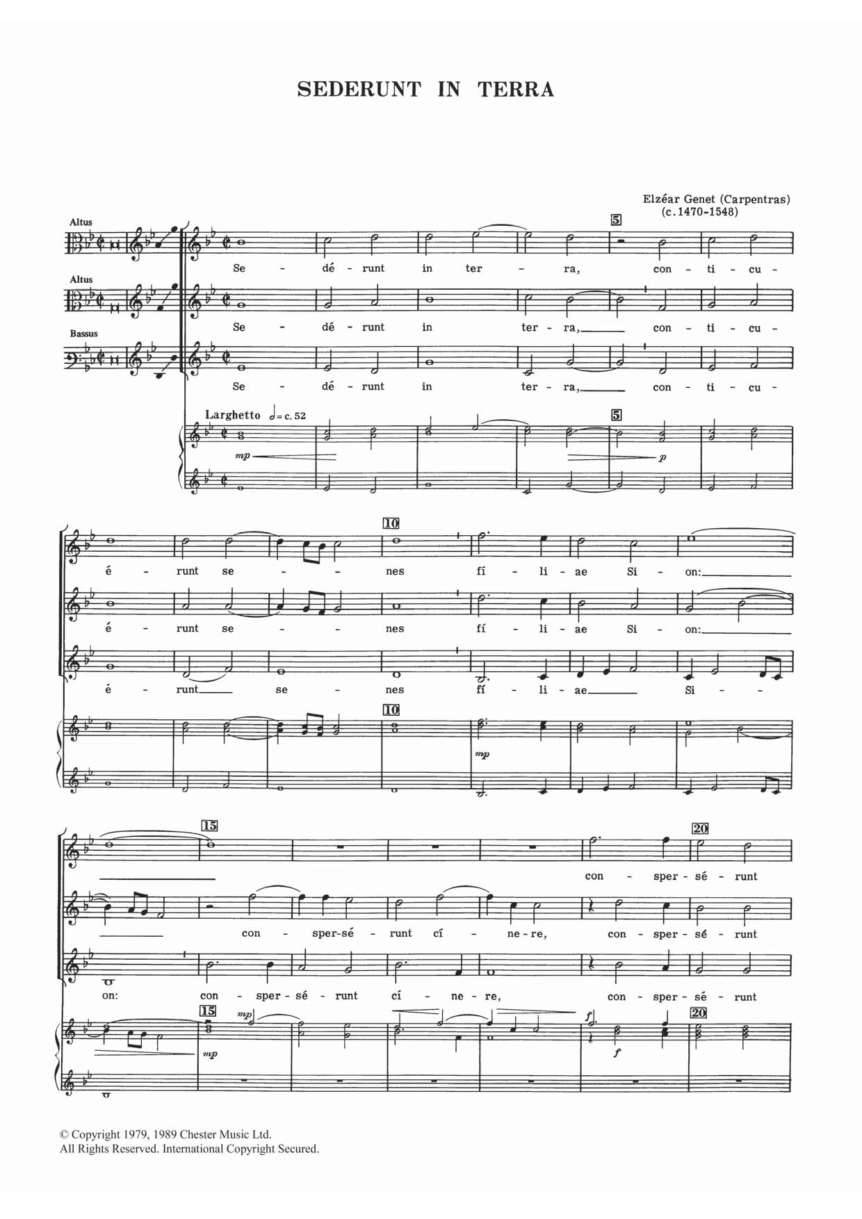 Download or print Elzear Genet Sederunt In Terra sheet music, chords and digital score arranged for Piano, Vocal & Guitar Chords. This Inspirational score includes 3 page(s).