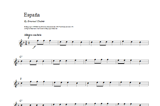 Download or print Emmanuel Chabrier Espana sheet music, chords and digital score arranged for Flute Solo. This Classical score includes 2 page(s).