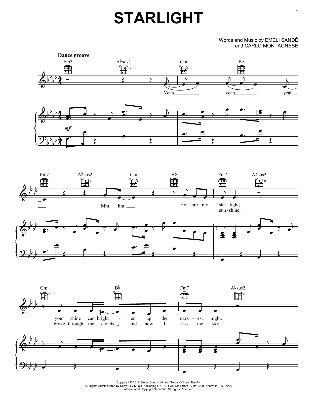 Download or print Emeli Sandé Starlight sheet music, chords and digital score arranged for Piano, Vocal & Guitar Chords (Right-Hand Melody). This Pop score includes 5 page(s).
