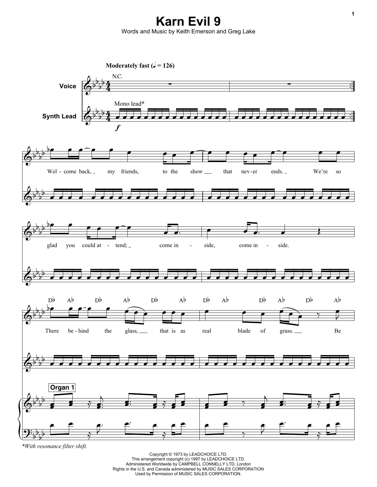 Download or print Emerson, Lake & Palmer Karn Evil 9 (First Impression) sheet music, chords and digital score arranged for Keyboard Transcription. This Rock score includes 18 page(s).