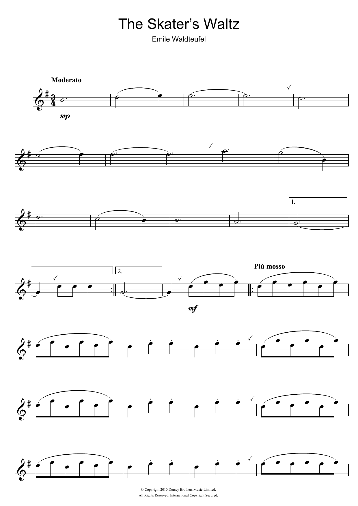 Download or print Emile Waldteufel The Skater's Waltz sheet music, chords and digital score arranged for Alto Sax Solo. This Classical score includes 2 page(s).