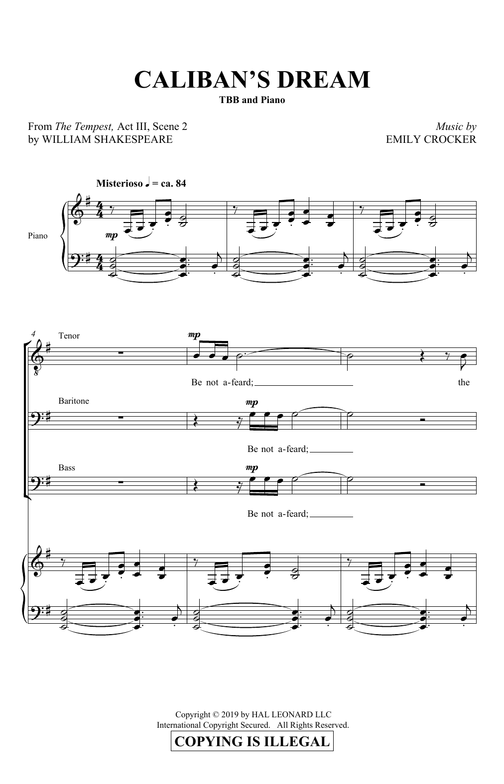 Download or print Emily Crocker Caliban's Dream sheet music, chords and digital score arranged for TBB Choir. This Concert score includes 9 page(s).