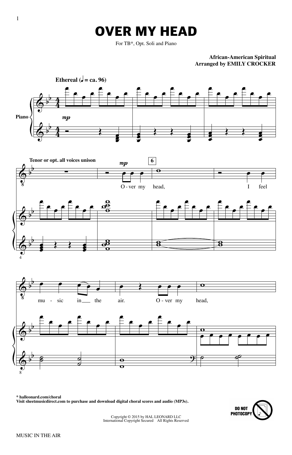 Download or print Emily Crocker Over My Head (from Music In The Air) sheet music, chords and digital score arranged for TB Choir. This Concert score includes 8 page(s).