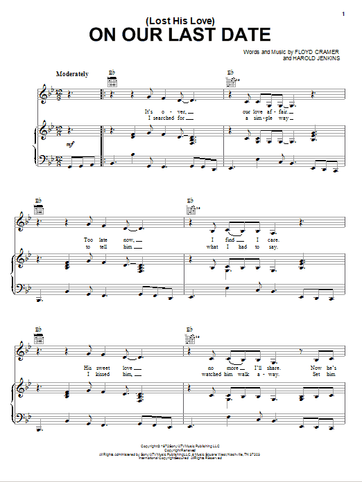 Download or print Emmylou Harris (Lost Her Love) On Our Last Date sheet music, chords and digital score arranged for Piano, Vocal & Guitar Chords (Right-Hand Melody). This Country score includes 4 page(s).