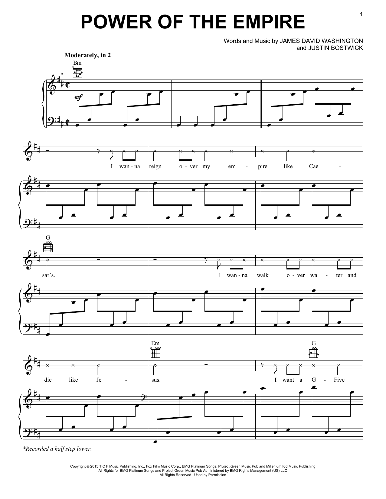 Download or print Hakeem Lyon/Bryshere Gray Power Of The Empire sheet music, chords and digital score arranged for Piano, Vocal & Guitar Chords (Right-Hand Melody). This Film/TV score includes 8 page(s).