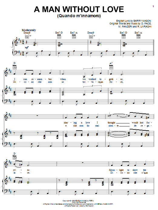 Quick facts A Man Without Love (Quando M'Innamoro) about digital sheet music