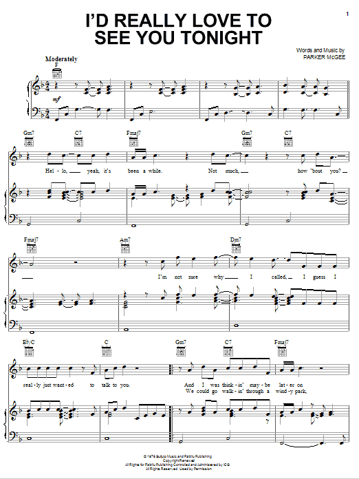 Quick facts I'd Really Love To See You Tonight about digital sheet music